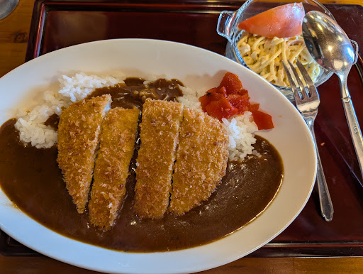 カツカレーを注文。¥648−なり😄 看板は、税抜き(¥600-)