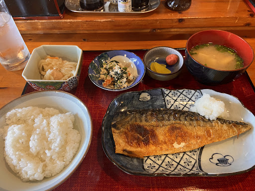 ていうのが感想。 今回は定食の日で、「特大焼鯖定食」。 焼き上がりの半身で 割箸の長さと同寸。