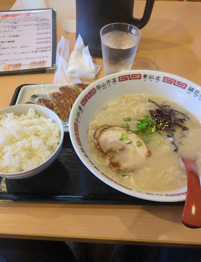 評判がいいので来店してみた。評判がいい店だと、わちゃわちゃしてる感があって好きになれないのですが、土曜の昼にしては平穏な感じでお店にもマッチしてて良いです。小さい子連れ様も老夫婦も、ゆっくり食べれてる感じが好印象です。肝心のメニューは、Aセット。風風ラーメンに餃子とライス。 いわゆる豚骨ラーメンでしたが、美味しかった。餃子は小ぶりでしたが。実はご飯が一番感動しました。変な好みなのですが、炊きたてより少し時間がたった若干硬め?な感じのライスが大好きなんですよ!ラーメンライスに合う!というか、なんというか(^o^)2週間愛媛県松山市に滞在してますが、一番美味しいご飯でした。このご飯なら定食系も食べたくなるくらいwww 次回は味...