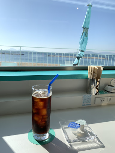 海をじっくり目で味わいたい気持ちでいたので 日差しは強いけど、 カウンター席にしました。