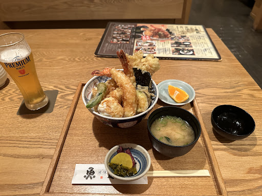 The kaizoku udon had a bunch of seafood tossed in with a light broth and hearty helping of noodles, plus a thick inari sushi on the side. The little clams fit the theme of the dish but the shells are a bit annoying. Partner got the tendon, which came with miso and pickles. A pair of jumbo shrimp and a big fish cake made it a...