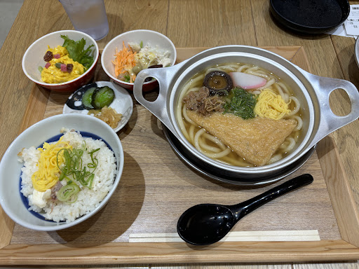 Read more入り口のタッチパネルで注文、支払、番号が呼ばれたら受取口で料理を受け取るセルフ式です 各種コード決済払いができます 定食はメインのおかずプラス小鉢2菜が付きます 焼豚玉子飯定食、松山鯛めしと鍋焼きうどん定食、松山鯛めしと天ぷら定食をレビューします まず鍋焼きうどんはアルミ鍋の松山スタイルです 牛肉や味付お揚げ、卵、カマボコの定番の具に、椎茸の煮物が珍しかったです 甘めの出汁と鯛めしがよく合い美味しかったです 鯛めしは小さな茶碗1杯でしたのでもう少し量が多ければというところでした 天ぷら定食の鯛めしはミニおひつでボリューミーでした 天ぷらは柚子塩より天つゆが良かったです 焼豚玉子飯は大きな焼豚が5〜6枚と玉子2個の目玉焼きが大盛りご飯の上に乗っていてボリュームがバグっていました笑 お腹いっぱいになります良かったです ...