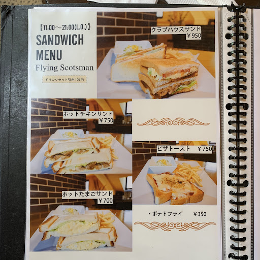 Read more木屋町 R196から 堀端➡山越側の流れで 右折したのち、右に本町6丁目フジ🅿駐車場を、 見付けると 道向かいに フライングスコッツマンが、、、(;゚∇゚) 🏡 ゲートを、潜るようにして カフェ駐車場に、入ります、自転車は 道に面して 軒に数台は止められるスペース有り カフェだとばかり 思っていて ランチメニューを、認識していませんでしたが。 11時まで注文可能な モーニングの和食や、 PM2時迄 OKの 平日日替わりランチ カレー ハヤシライス 🍝パスタランチが、有りました。 ヾ(o´ェ`o)ノ シフォンケーキのデザート ☕コーヒー 充実したランチが楽しめました、