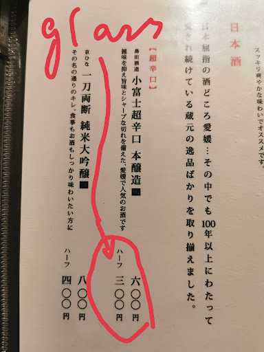 The fish course was good but the staff didn't know how to pour sake. It was 300 yen a glass and I ordered 600yen, which should give me at least the amount of two glasses. It was served in one glass inside the wooden box. I fished the first glass and poured the sake in the box into the glass. But there was only half a glass of the amount. I was unhappy because being short in wine is considered bad manner in Japan. Most shops would give you a very generous pour to express their hospitality. Under-serving the customer is not only dishonest but also offensive.