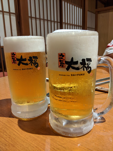 買い物帰りに焼肉店を探していましたが、今日は成人式ということもあってどこも予約で一杯でした。通りかかった大福はなみずき店に電話すると「予約で一杯ですが18時30分までなら食べ放題、飲み放題ナシという条件で利用できます」ということで開店と同時(17時)に来店しました。 店内は広く清潔感があり、良い雰囲気です。個室に案内していただきましたがテーブル席も多く、ゆっくりと食事ができそうです。何より来店時からスタッフの対応がとても感じ良くチェーン店にありがちな評価を一段押し上げている気がしました。 牛ハラミ、大判ハラミ、特上牛タン、豚カルビ、鶏モモ、ウィンナーとライス大盛り、飲み物はビールを注文しましたが安いです!普段通っている焼肉店の半額くらいの値段。しかも提供が早かったです。 チェーン店なので全体的にお肉が薄いことは予想していましたが実際、薄かったです。薄さ対策で注文した厚めの大判牛ハラミは焼き上がったハラミをハサミで切って食べる定番スタイルですが少しカタかったかな…例えるならステーキ。次に特上牛タンですがこれも薄くて不自然に丸いので例えるなら生ハムでしょうか。焼くと牛タンになりました。そのほか鶏モモは美味しいのですが切り方が適当、ビールのジョッキが小さ過ぎる等々、多少難はありましたがタレは美味しかったです。 醤油タレは甘口ですがさっぱりしています。味噌タレは小袋で置いてあるコチュジャンを少し加えると韓国風になりビールやライスがすすみます。 結論としてチェーン店と割り切れば広い店内と感じの良いスタッフが対応してくれる良いお店です! 会計の時に思いましたが、焼肉専門店の半分〜3分の2くらいの料金で食事できます。ランチや食べ放題もあるので今後も利用させていた...