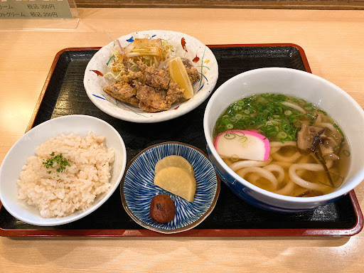 Read more久しぶりに訪問しました。駐車場は、少し狭いと思います。休日13:30頃に訪問しましたが、15分くらい待ちました。入口に、待ち合い場所と順番待ち名前記載台があります。提供は、少し遅いです。20分程度かかります。唐揚げは肉が小さく、欠片がある適度です。衣が多い。から揚げと言うより、うどんにいれた方が良いくらいです。麺は余り美味しくありません。冷凍麺と変わらないです。1玉にしましたので量は普通にあります。どんぶりとのセットの方が良かったと思いました。スープは、ソコソコ美味しいので良いのですが麺は残念です。お茶は冬でも冷たい麦茶です。言えば温...
