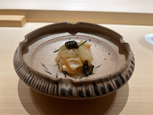 It’s hard to pick my favorite thing we ate- maybe the abalone with abalone liver sauce. The sushi rice was some of the best I’ve ever had. The tomago at the end was unlike any tomago I’ve had- it was like a firm custard... amazing! Everything was amazing, some of it very traditional and other...