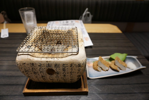 The jacoten, also known as fish cake, is served with a hibachi grill and the flavor is greatly enhanced and elevated with the jacoten being grilled to your preference. The aroma from the grill is indeed sensational. Another jewel in Kadoya is the skin-grilled bonito, which is one of the best bonito dishes I have ever tasted. The chargrilled skin of bonito really adds complexity and depth to the flavor of it, and it's an indeed unforgettable experience that the utmost harmony can be created from the combination of raw bonito and grilled skin.