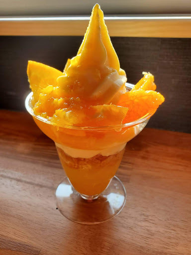 The second floor is a cafe where you can enjoy mandarin orange 🍊 related parfaits. In terms of space, it's not very large, so when it's crowded, you may feel small or wait until a seat becomes available. I hope there is a little more space, but I had a Mikan parfait while gazing at the beautiful seascape in front of me 🍴🙏