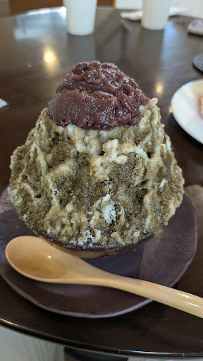 次に「やまちゃほうじ茶のかき氷」をいただきました。ほうじ茶の香ばしい風味が口いっぱいに広がり、甘さ控えめで大人の味わいです。ほうじ茶のシロップがたっぷりとかかっており、最後まで飽きることなく楽しめました。