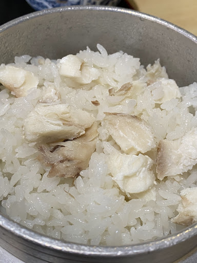 ご飯は真っ白 醤油使ったダシ汁で炊いた茶色かかったのを予想してたけど、ほんのりダシで甘いご飯で鯛の身を味わうなら最低限の味付けで大正解だと思います 鯛がかなり身持ちよくて、渡り蟹の身みたいな食感