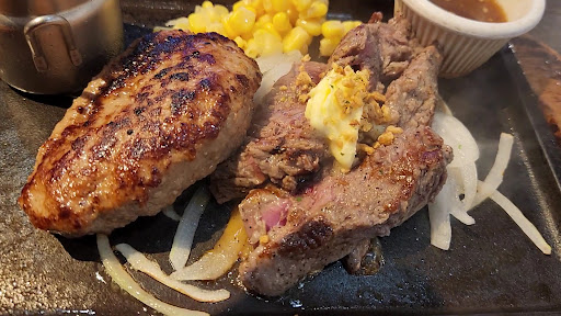 Read more4月22日土曜13時訪店、待ち無し、 カットステーキ&ハンバーグコンビのレギュラー1,100円、ライススープサラダセット110円、ドリンクバー220円、計1430円安いよね~ 6分で出て来て20分で完食 ステーキもハンバーグも思った以上に柔らかくソースも美味しかった、カットステーキは筋張ってる事もなくナイフ無しで食べれる、ハンバーグは牛7豚3割合だが肉汁もあっさり目で多く満足、 ライススープサラダセットは充分な量だし、ドリンクバーもコスパ良しで4杯飲めた、 口コミ3.9の評価だが4〜5でOK リピート有りのお店です