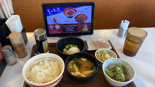Read more過去利用してきたお店の中でトップクラスに態度の悪い店員に当たりました。 若い女性の店員で終始気怠そうにレジ対応し、こちらが決済方法を伝えても返事も無し。無言で機械を操作するだけ。 しまいにはテイクアウトの商品を渡す際に厨房の方を向いたままこちらを見ることもなく横を向いたまま片手で渡してきた。 こっちはあなたの友達でもなんでも無いのですが…どんなに忙しいお店でもそんな渡し方をして来るお店に出会った事はありませんので絶句しました。 店員は牛丼を作って持ってくるだけの機械だと割り切って利用する店舗だと思います。 車で数分走れば松屋があるので食券+番号呼び出しの方...