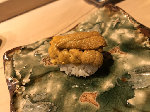 赤ウニ 地ものの赤ウニ 今週でたばかりでラッキーでした いつもはまだ解禁されていないくらい 今年は例年よりも早いそう(予約の際に大将に聞けば何が入りそうか教えてくださるそう)赤ウニのしっかりとコクがありすこし弾力があって食べ応え十分。 同じ時期に鹿児島のむらさんで佐賀のムラサキウニをいただきましたがコクは赤ウニ、キリッと食べたいならムラサキですね。。
