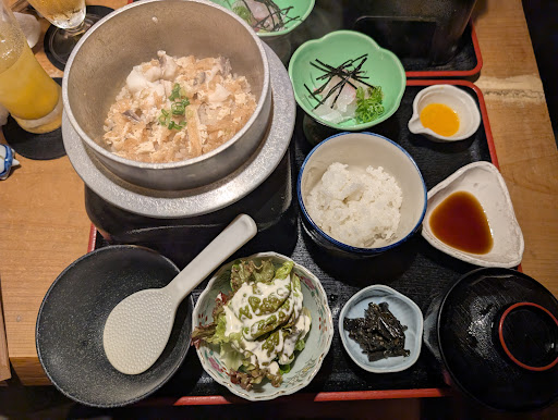 We went for dinner and although it was busy, we were offered a table. The menu has a few options, out of which the recommended taimeshi rice stood out. The set that we ordered, although it was tasty, was quite a small portion so we were left a bit hungry for the price (ยฅ3500 per set). If they would have added a bit more rice, we would have felt full. The place is quite small so it can get quite noisy, especially if the table in the back is full.The service was good and polite. Overall we had a good dinner, but felt a...