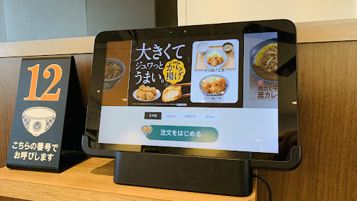 吉野家さんは店員さんの通路が付いたカウンターがトレードマークでしたが、最近のお店は普通の席のレイアウトになっています。