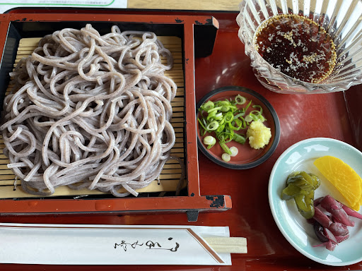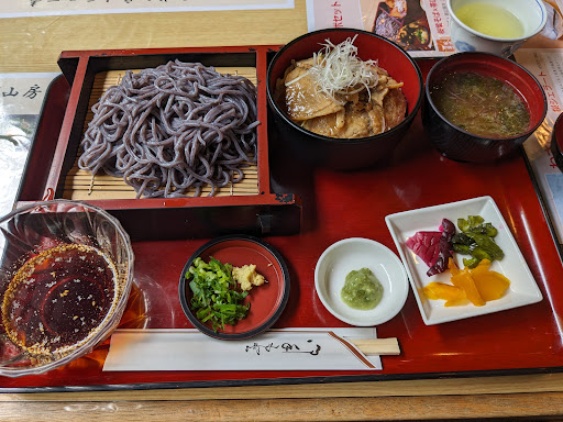 2024.11.10利用 この日は前日からイベントがあって駐車場もやや混んでましたがお店は混雑なく入れました。 店内はキレイにされていて雰囲気が良かったです。お座敷とテーブル席がありました。 旅行の途中、昼食に寄ろうとメニューも決めているものがありました。 それは、桜葉そばと棚田黒米うどんです。 旅行先では 出来るだけ土地の物を食べてみたい、といつも思います。 なので こちらを注文。 私は桜葉そば。主人は棚田うどん。 桜葉そばは見た目も緑色で美しい。 桜の香りが口の中に広がります。麺がかなり腰がありました。冷たくしめられた麺、最高でした!とにかく桜の風味がとても美味しかったです。 主人の棚田うどんも凄く腰がある!そして旨い!!と大絶賛してました。黒米を練り込んでいるため 今まで見たことのない、黒い麺です。 旅館の夕食に響いてはいけない、と定食は避けましたが、丼とのセットもお得価格であるみたいです。 本当に美味しくて、大満足!2杯食べたいぐらいでした。 店内にお土産物が少し置いていたので ネットにも載っていた「伊豆の踊子」の饅頭を買って帰りました。 また機会が...