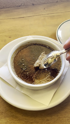 ◾️栗のブリュレ 程よいビターなカラメルが、カチッと音を鳴らして、バリッと砕ける。しっとりとした栗のクリームと共に食べると、栗のコックリとカラメルのビターがちょうど良い。のんびり食べて、空を見ながら思考にふけるときのお供にちょうどよき。