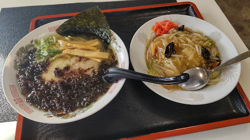 Read more同僚と初めて来ました。駐車場が一杯だったので同僚が道路向かいの空き地に停めて良いか確認したらOKでした。店内に入ると7割くらいの埋り。時間をずらして来ても後客もいました。塩ラーメンと中華丼の両方が小でラーメンに岩海苔トッピで注文しました。同僚は辛味噌の小でチャーシュー増しという謎の注文。人の好き好きですからね(笑) さて、お味は…ん~、自分には塩ラーメンは合いませんでした。何と言うか、課長が強いのか、課長がいなくて物足りなかったのか…トッピした岩海苔は十分な量があって良かったです。 中華丼は、餡が強すぎかな。ソッコー酢とラー油を投入しました。そうすれば自分には大丈夫でした。木耳がいい仕事をしてました。うずらの卵があれば更に良かったかな。海老は小さいのが2尾。まぁ、いいか。全般的に味は好みによりますが悪くはありません。が、自分の好みではありませんでした。次は定食系を狙ってみようかな。他の人が食べていて美味しそうだった。醤油も試してみたい。 因みに同僚の辛味噌は、辛くもなんともなく、フツーの味噌ラ...