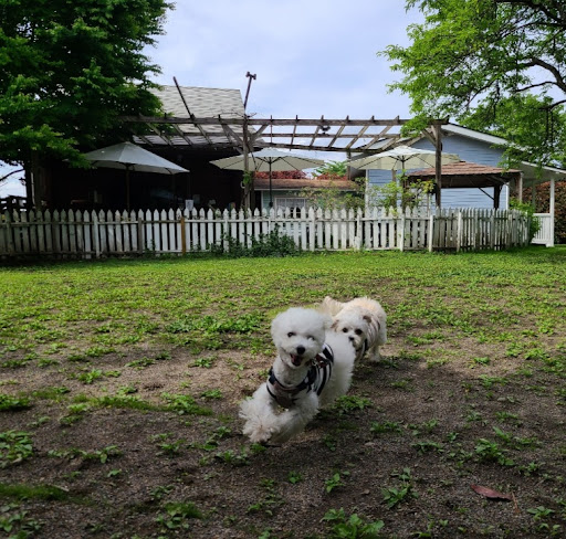 Read more那須旅行の帰りにドッグランで遊ばせられるカフェを探して来ました。入って早々、先客の常連客の大型犬に吠えてしまいましたが、飼い主の方もオーナー夫婦も気さくで感じの良い対応でした。テラス席に案内されて、初めての利用なのでオーナーから一通りの説明がありました。他のワンちゃんがドッグランに入るときは毎回必ずリードを付けてワンちゃん同士挨拶をして慣れてからリードを外すと聞いて、ドッグラン初心者の愛犬には安心して遊ばせられると思いました。(2頭のうち、1頭がビビリで慣れるまで吠えてしまうので、カフェや宿に併設のドッグランしか利用した事がないのです) 料理が来るまで思い切り走らせる事ができ、とても楽しそうでした。入れ替りで大型犬がドッグランを利用しているときは、テラス席で自由にさせてもらいました。そのタイミングで写真も撮っていただき、旅行中集合写真が撮れなかったので、良い記念になり、嬉しいサービスでした。
