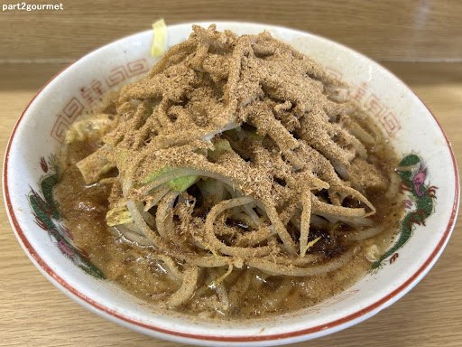 予習をするとどうやらカツオくんがここの有名なトッピングらしく、他には岩下の新生姜など栃木二郎ならではのトッピング。 やはりここはカツオくんは試してみたいということで。 小ラーメン、にんにく、脂、カツオくんに決める。 カツオくんが鰹節の粉末にしたものである事は事前に理解していたがはたして二郎にどう絡むのか楽しみだった。