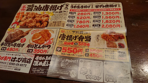 10/3オープンした模様。僕は6日に訪れた。 オープンサービス期間はメニューを絞りにんにく醤油味の唐揚げと唐揚げ弁当という品揃え。 量あたりの値段は他の唐揚げ屋に比べても適正な設定だと思う。 商品が手渡される時に「食感を保つ為 あえて蓋はしない」といった内容の口上が述べられる。 一個の大きさは他で売られているものより ひとまわり以上大きく中々のボリューム。にんにくと醤油の香ばしさが食欲を掻き立てる!言うだけあってクリスピーな食感も上々!火の通りもちょうど良くジューシーだ。 店内にディスプレイされている『下総醤油』のボトル。味付けに使われている醤油だそうだ。醤油の味に自信があるのか、にんにくと醤油のみでほかに小細工の施された様子がない比較的シンプルな味付けの様だ。わりと飽きのこない味わいだと思う。個人的に好ましくおもうのは化学調味料等の不自然な味を感じさせないところだ。 ただ、酒や飯の供としては悪くない塩加減だが、唐揚げのみを何個も摘まむには少々塩辛いかも?