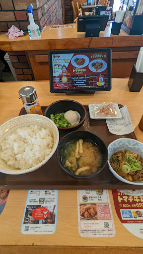 Read more店に入って、いらっしゃいませの挨拶無し🤔 お客さん二人居たが、入れ代わるように帰って行きました🙄 たまには違う物にしようと、メニューを閲覧するも、麦茶?!水?!持って来ない🤔 メニュー表は汚れていて汚い❗ カウンターには、ご飯粒が付いたまま😬 呼び出しボタン押しても中々来ない🤔 やっと麦茶?!水?!を持って来たと思ったら、店員さん外国の人だった😮、しかも深夜に1人だけ‼️ 取り敢えず、牛あいがけカレー1.5盛りを注文(すき家でカレーを注文するのは初めて)😮
