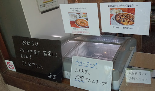 Read more数年ぶりに来店しました。 11時30分の開店と同時に伺いましたが、既に4組くらいの人が前に並んでいました。 メニューがないということで、入口付近で10分ほど待って案内されました。私の後ろのお客もみんな入口付近で待たされており、座席が空いているのなら、入口付近で待たせてないで、座席に通せば良いのでは😅と思いました。他の客も同じようなことを言っているのが聞こえました。もしくは、メニューがないのなら、メニューを増やせば良いのでは😅 やっと席に案内され、角煮カレーときのこの焼きカレーを注文。さらに40分くらい待って角煮カレーが到着。 角煮は思ってたより固く、柔らかくはなかったです。美味しいカレーですが、1200円ではコスパが悪く、最近は他のカレー専門店や飲食店のカレーもレベルが高くなっているので、わざわざここで食べなくても良いかなと思いました。時間もかかるし。しかし、これだけ混み合うということはまだ...