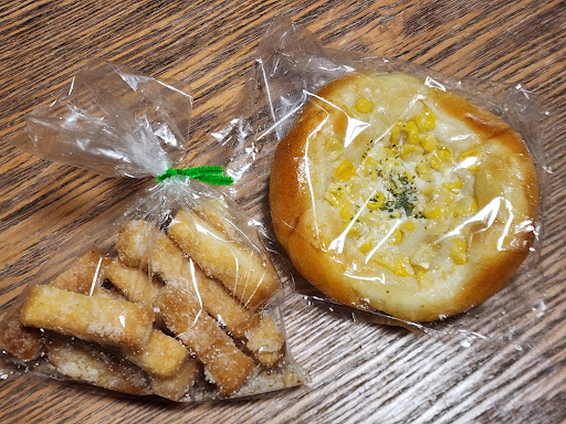 丸棒状のパンとホットドック、フレンチトースト、コーンマヨ、ラスクを購入させていただきました。ラスク2パターンあり、両方とも試食がありました。レジ横にあった方が、食感も風味も良く美味しかったのでそちらにしました。
