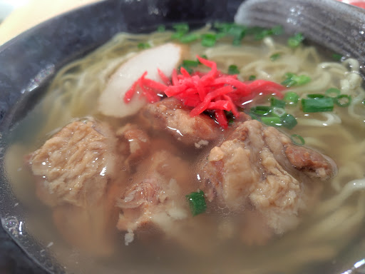麺類はあっさりとこってりの2種類から味を選択できます。私はあっさりタイプのソーキそばを注文しましたが、びっくりするほどダシのうまみを感じられました。あっさりであんなに美味しいなら、こってりはもっとすごいかも。 スープに浸されたソーキは、箸でつまむとホロホロと崩れそうなくらい柔らかくなっており、臭みの全くない脂があっさりスープと相性抜群です。 麺類にはサービスで小ライスをつけることもできるので、肉とスープをあまさず味わいたい人にもオススメです。