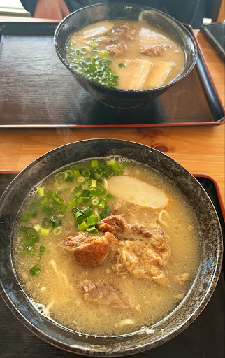 Unlike the first location, this one is only open for lunch. It gets pretty crowded where some people end up having to wait for seats. The restaurant uses a ticketing system , so you purchase the ticket at the front and you give it to the kitchen in the back. When it’s ready, you also pick it up from the back, and when you’re done with the food, you deliver it to the return area. It has unlimited water and tea, and there are various compliments you can put on your noodles. At this location, the Okinawan donut cost 80 yen. The staff are very pleasant. The food tastes very similar to the first location, but it’s not exactly the same. Come and try it...