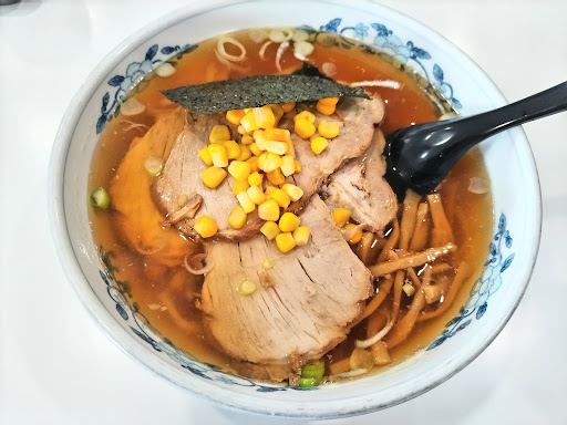 スープは煮豚のダシ主体で、生姜の香りがあるあっさりスープ! コーンが意外といい仕事をしていて何処となく懐かしい感じ。