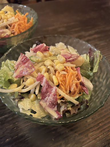 さて、入店。 他の方のレビューで知っていましたが、暗ーいお店ですw まぁ、それがいい雰囲気を作っているのですが。 晴天の日の昼間に入店すると一瞬真っ暗に感じると思います。 席は4人がけのテーブルが6,7脚?と奥に6人がけくらいのテーブルと入口近くにカウンターも有ったかな? テーブル間がゆるく仕切られたような感じになっているので、大人数には向きませんが、個室感があるのも落ち着いて良いですね。 お隣の席では婚約中のカップルが、女性側のお母さん、お祖母さんと顔合わせしているようでした。 デートにもいいと思いますね。 ちなみにこの日は連れ添って24年目の妻とのデート気分で来たのでちょうどよかったです。 ただ、そういう作りなので見通しの悪いお店で、店員さんを呼びたいときなどはちょっと苦労するかもしれません。
