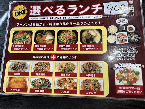 Read more夜はプロジェクションマッピング?のサインで結構目立ちます。 腹ペコで入店。よくある中国人であると思われる方のよくある中華屋さんの雰囲気。 個人的な偏見かもしれないですが、中国人の店員さんだと結構接客の時点で萎えてしまうパターンもありますが、このお店は気持ちの良い接客で迎えてくれました。 ミニ丼+刀削麺セット 丼は唐揚げ丼を刀削麺は坦々麺でオーダー 唐揚げ丼はメニューの写真からあまり美味しく無さそうなビジュアル…🤣 唐揚げが食べた過ぎてオーダーです。 ところが唐揚げ丼はスパイシーで美味しい!ご飯もガッツリ(女の人には多いのかな?) 良い方に期待を裏切ってきました。 坦々麺も濃いめのしっかり味でライスも欲しいくらい。 ガッツリ食べられて990円!コス...