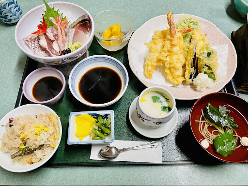 Read moreこちらの釜飯定食を目当てに伺っています。 釜飯はタコ、穴子、牡蠣、鰻、鶏など釜飯の種類も豊富です。定食には天麩羅かお刺身をチョイスできるのですが、ほぼお刺身にしています。 三原漁協推奨するお店ということで、新鮮で美味しいんです! そして大きく切ったたこを串に刺し、揚げてあるたこ天も最高ですよ。