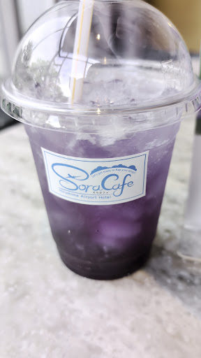 そらカフェ&ダイニングバー(1階フロアー・アチュロではない方) 地元住民なので宿泊ではなく、隣接する三景園入場特典で、割引があったので利用しました。 三景園の花まつりに合わせた、『紫陽花ソーダ』を頂きました。テイクアウトのつもりだったが、たまたま人も少なかったので席に着きました。