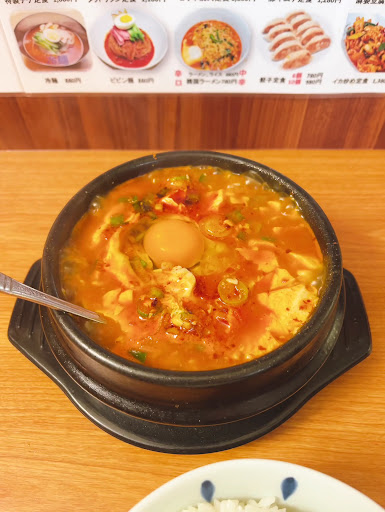 スンドゥブチゲ定食を頂きました。 グツグツの石鍋に海鮮だしの効いた豆腐が美味しい! 韓国料理が食べたくなったら是非ともオススメしたいお店ですね。
