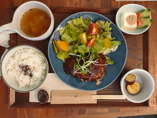 ランチは週替わりランチとカレーの2択でした。三ツ星ヘルシーランチ店なので、どちらのメニューもお野菜が多く使われており、彩りも綺麗でした。 カレーはスパイシーさを抑えた、食べやすい味わいでした。週替わりのハンバーグはフワフワジューシーで、デミソースとチーズの組み合わせが美味しかったです。またデザートのレアチーズケーキも美味しかったです。 店内はお家を改装した感じで靴を脱いで入ります。落ち着いた雰囲気の店内は雑貨も置いてあり、居心地が良かったです。 住宅街にあるので少し分かりづらいですが、グーグルマップは正...