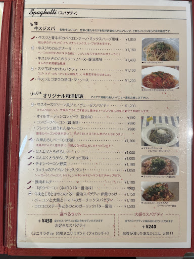 注文 ★牛スジと青ネギのペペロンチーノ 1050円 ★たらこナスベーコンにんにく(大盛り) 1150円+240円 ★フォカッチャ 250円 ★いろんな野菜の健康サラダ 720円