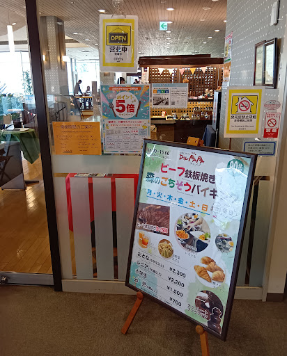 県立三木山公園内にあるバイキングレストラン 営業時間11:00~15:00でラストオーダーは14:00 駐車場は三木山公園の所を使って無料(390台) 料金は大人(中学生以上)2300円 シニア(70歳以上)2200円・小学生1500円 幼児(4歳以上)700円で平日・土日祝日も同一料金 平日は時間制限無し・土日祝日は90分