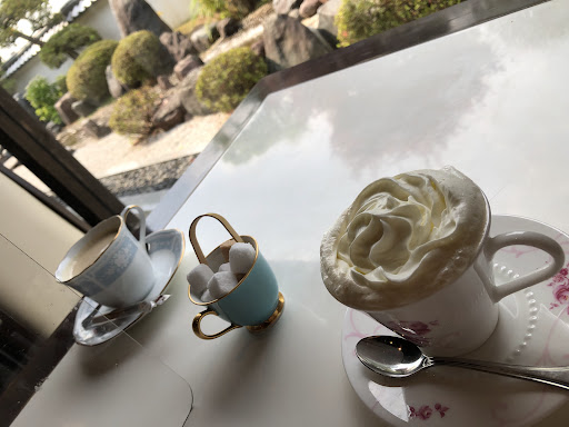 三木市の緑ヶ丘ネオポリスの北、窟屋交差点の東にあります。駐車場は広めで停めやすいです。店内は禁煙で、外の喫煙場所に、お客さんが数人集ってました。初めて来た際は、「混んでて並んでるのかな?」と思ってしまうかもしれません。とても雰囲気の良い店内で、中庭には、水が流れており、ししおどしも設置されていました。ちゃんと動いていましたが、店内から音を聞くことはできませんでした。昼過ぎということで、お客さんの数は、多くはなかったのですが、時間帯によっては、席が埋まりそうな感じがしました。あとから来られたお客さんは、予約をしていたようです。今回は、食事の後だったので、ウインナコーヒーのアイスのみをいただきました。 帰りに、コーヒー豆...