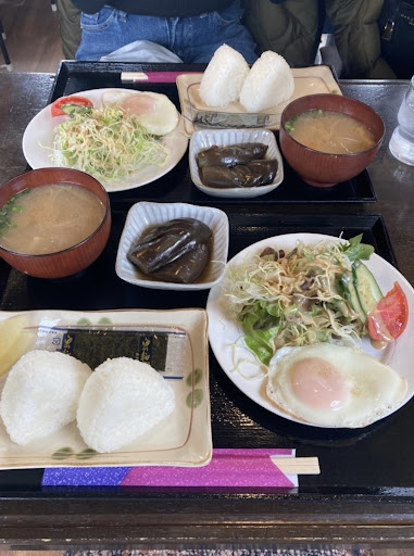 知人と一緒に訪問しました。 まず、知っている人とじゃないと場所がわからない。 珈琲と書かれた幟が立っていますが、そこからぐるりを見回してみても、店らしい建物は見えません。 最近、手前の雑木林が造成されたみたいで、少しは見通せますが、前は何にも見えなかったとか😅 幟の横の細い下り道を下った途中に入り口があります。 お店は、本館(?)と離れ(?)、オープンテラス、ドーム型透明テントで構成されています。 今回は、ドーム型透明テントに座りました。 今からの時季は晴れたら暑いかもですね。 訪問時はポカポカとよい室温でした。 次に、メニューがないみたいです。 奥さんが「モーニング付けます?」と聞いてくれます。 モーニングは、トーストセットとおにぎりセットの2種類あるようで、トーストを頼むと、卵の調理法(ゆで、目玉、スクランブル)を聞かれます。 今回は、3人で伺いましたが、3人ともトースト目玉でお願いしましたので、他との比較はできませんでした。 コーヒーのトーストで400円、おにぎりは500円らしいです。 出てきてビックリ‼️ 分厚いトーストとハムエッグ、サラダまで付いていました。 パンがフワフワ。 シフォンケーキ食べているみたいです。 卵も黄身がいい感じの半熟で美味しかったです。 コーヒーは浅煎りの雑味のないスッキリした豆を丁寧に淹れた美味しいコーヒーでした。 追加で、アイスコーヒーを頼みましたが、それもスッキリした飲みやすいコーヒーでした。 おかげで、のんびりと楽しい時間を過ごせました。 ちなみに、遅い時間までモーニング可のようです。 もちろ...