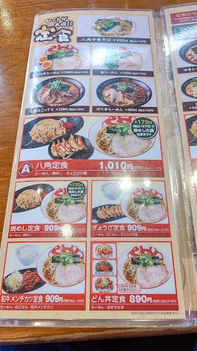 ラーメン屋さんは殆ど入らなかったのですが、珍しくラーメンが食べたくなって入りました。評判とかは知らなくて、街道沿いで近かったので。 定食で餃子、半ちゃん焼飯、あっさり系ラーメン。 モヤシ、ネギ増量、ニンニク入れて腹一杯コース。よく王将でこのコース頼んでたんですが、ラーメン屋さんの方が美味いかなと。 餃子は失敗したと思いました。 その定食は唐揚げか餃子の2択でしたが、後から皆さんの写真を見るとどっちもどっちかなと。 その日は年配の女性店員さんに「4の付く日は唐揚げが安いですよ」と言われ、定食の餃子を唐揚げに変更する事かと勘違いして頼んだら、別の皿で大ぶりの唐揚げが4枚。途中で聞き直した時は、既に調理済みとの事で受け入れました。店員さんの説明が解り辛かった。別注文の唐揚げは薄味で、肉も伸ばして平たかったので、普通の唐揚げとは食感も違って柔らかくて美味しかった。満腹過ぎました。 コスパは良いけど、皆さんの口コミ通りかと思います。 帰りに駐車場から出ようとしたら、お店の裏の勝手口の戸を開けて、座ってタバコ吸いながらこっちを睨んでる厨房にいた若い男子に気づいた。あまり見たく無かった光景でした。タバコは構わないけど、今時メンチはねー...
