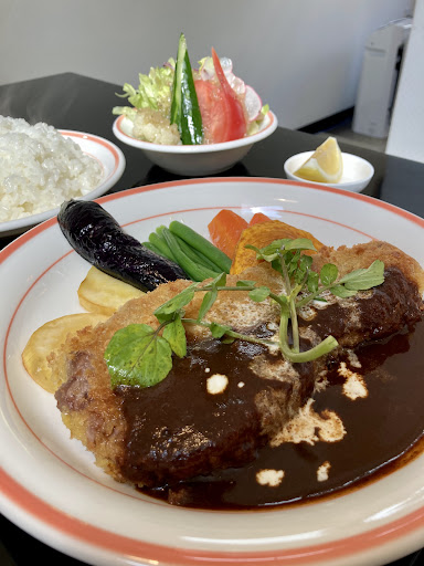 Read moreお昼は出先途中の日香木で本日のオススメになっていたヒレカツレツセット。 見た目はサーロインかと思うような大サイズで食べてみると確かにヒレ。 中央部はややひんやりとしたレア肉はどこか記憶の隅にある味わいで、記憶を辿るうちに那覇のジャッキーのテンダーロインステーキと似てるんだなと気付いた。 肉質は驚くほど柔らかい。 鮮度の良いサラダと付け添えの野菜ソテーもボリュームたっぷり。 ただこれだけレアだとナイフとフォークでは衣がどうしても崩れてしまうのと、お皿の面とソースのかかったところの衣が柔かくなってしまいカツレツのさっくり感が失われてしまう。 これは他店で見られるように揚げた時点でカットして、ソースの上に断面が見えるように並べて提供すれば回避できることなので少し勿体無い気がした。 ハンバーグを一口分けてもらったが切断面から肉汁がジュワッと溢れ出て熱々ジューシー。 こちらが本命なのかもしれない。 駐車場は小さめで4台分。 軽だと普通に停められるが普通車の人は苦戦しているようだった。 普通車の少し大きいサイズだと2台、運転の上手い人なら3台いけるかいけないかというところ。 洋食のスタンダードが選択肢豊...
