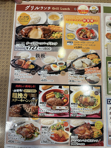 数回テイクアウトを利用させていただきました。 前回は冷麺を注文しましたが、うどんの麺が混ざっていました。あまり良い気はしませんでしたので1口だけ食べましたが、麺も茹ですぎており美味しくなかったです。 今回は孫が帰ってきたので久しぶりにこちらを利用させてもらい、キッズメニューのチーズINハンバーグを注文しました。持ち帰り確認すると、小袋のケチャップやふりかけ、ゼリーが入っておらず、お箸も1本も入っていませんでした。私はチーズINハンバーグ&エビフライを注文しましたが、タルタルソースがかかっていませんでした。 電話にてお問い合わせをしようと思い何度もかけましたが、店内が混みあっていた為か繋がることはありませんでした。 テイクアウトを注文する度に何らかのミスがあり、従業員さんの教育が不十分ではないかと感じる点が多々あります。 来店した際にも何組も家族連れのグループが待たれており、レジ付近で2人の従業員さんが立たれていましたが、従業員さんからは何の案内もありませんでした。 忙しい曜日、時間帯ということもあると思いますが、少し雑すぎるのではないかと感じます。従業員さんの教育や商品の確認...