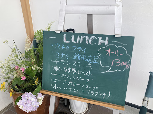 ランチメニューはALL税込1,300円。看板に書かれたメニューの中からメインを選びます。この度は豚・なす巻きローストを注文。