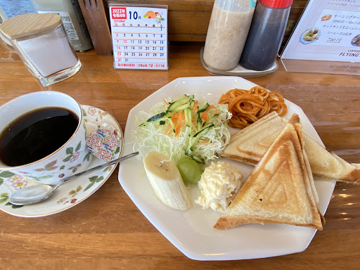 Read moreモーニング☕🍞🌄にお邪魔しました。8時開店なのに 既に7人のお客‼️常連さんみたいでコーヒー☕しか飲んでいないようです。常連さんと喋りながら 私達のモーニングの用意(唾が飛ぶがな😡⚡) やな感じ。仕方ない⁉️モーニングは、2種類なので、旦那とパンを交換するので2種類とホット☕コーヒーを注文😁✨✨ まー、サラダのキャベツも臭くなく シャキシャキしてたし、食パンも柔らかくてよかった〰️😅 珍しいことに ホットサンドの中身 焼いた卵とハムでした。😋🍴💕これは 高 評価ですが、しゃべってたので、星2つにしました。接客も 大事ですよね~✨ ...