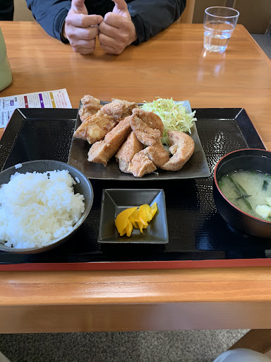 日曜日のお昼時 唐揚げで 有名な◯石に向かうも 混雑していたので 急遽コチラにしました。 個人的には◯石に近い味? コチラも好きなので どっちでも良いや!って感じです。 店内はほぼ満席ですが 1つだけ空いていた 小上がりのテーブル席に通されました とりあえずメニューに目をとおしますが いつもの骨なしモモ唐揚げ定食650円に オロシぽん酢50円 嫁さんはうどんセット550円を注文 待つこと10分少々で配膳されました 唐揚げは生姜醤油ベースの味付けでアッサリ 揚げたてで熱々なので ぽん酢につけて冷ましながら頂くのがベスト。 猫舌の当方はそのままだと口の中を火傷しちゃいます うどんは冷凍麺でしょうか? スープはしっかり出汁が効いており美味しいですね。 どちらも味は申し分ないし コスパも良いので 普段使いに最高ですね。 また伺いま...
