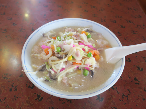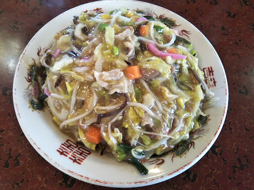 Read more南島原市深江庁舎から程近く、国道251号線沿いにある「浜勝ストア」のわき道から入ったところにある中華料理店。店手前に7台分の大きな駐車場があります。今回注文したのは皿うどん太麺。ちゃんぽん用の浅いドンブリに盛られた皿うどんは島原らしくボリューム満点!特筆する味とは言えませんが具材豊富で味わい深く最後まで美味しく完食でした。麺・飯類のメニューは500~600円のものがほとんどでお得感も抜群。駐車場も広いのでまた機会を見て他のメニ...