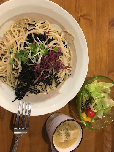 Highly recommended! Good service, delicious food! It’s a Cute cafe/dessert cafe with a small bakery inside (Go early for bread) and it has lots of selection on desserts! Custard pudding (called pulin = プリン) was very creamy and excellent! I tried Kinako (soy powder) doughnut and it was delicious. 3 of us enjoyed our meals here, Chicken curry, Hijiki pasta(Special of the day), and most amazing thing the staff did for my vegetarian guy, was they accommodated a dish to a veggie friendly pasta dish. It made his day! And was delicious pasta!! Thank you for the friendly and kind gesture. Next time I’d like to try the chicken in tomato sauce!